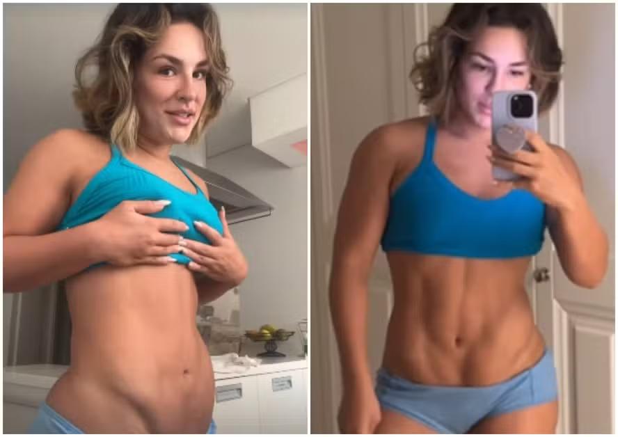 “E esse oblíquo berrando? Eu nem treino. Gente, o cutting… Meu corpo está respondendo muito bem. Meu quadríceps está marcando muito. Não tinha isso aqui”, mostrou ela em um vídeo postado nas redes sociais.