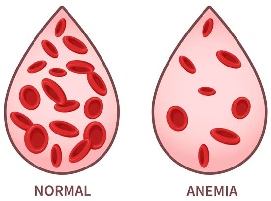 A baixa contagem de glóbulos vermelhos no sangue dá origem à anemia. Com menos glóbulos vermelhos circulando no sangue, menos oxigênio chega aos órgãos do corpo, pois é a hemoglobina que está presente nos glóbulos vermelhos que tem a função de captar o oxigênio nos pulmões e entregá-lo às outras partes do corpo.