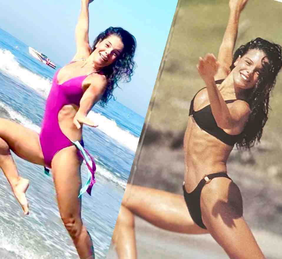 A imagem é a recriação de outra foto de um passado distante, mais precisamente de 33 anos atrás, em 1990. A fotografia foi capturada na mesma praia e a atriz fez uma pose quase idêntica a de mais de três décadas atrás.