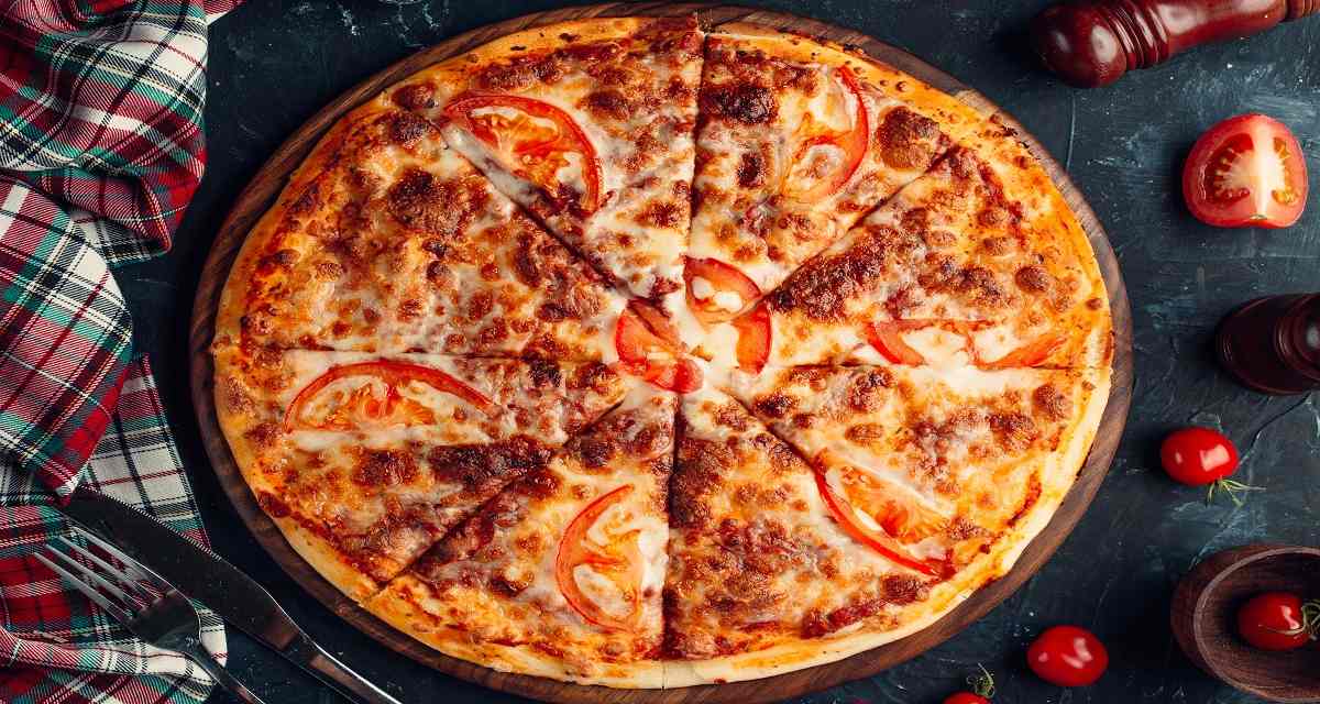 Mas e quanto ao recheio da pizza? Bem, quem aparece nele é a brasileiríssima carne seca, ao lado do queijo, do tomate e de temperos.