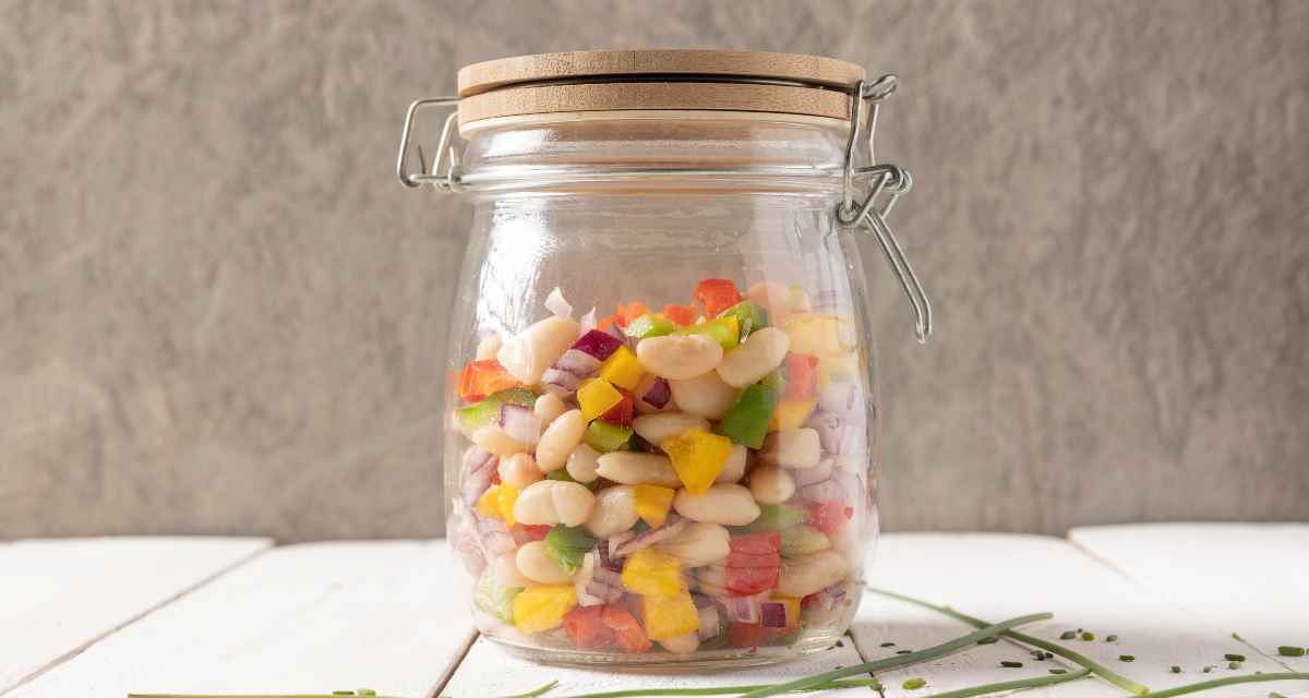 Para quem estiver sem ideias, hoje vamos apresentar uma sugestão de salada de pote light. Ela é feita com feijão fradinho e traz uma série de legumes e verduras saudáveis como couve, alface, beterraba, cenoura, pepino, pimentão, brócolis e tomate.