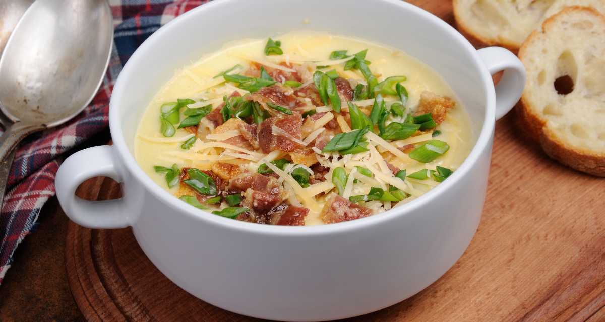 Uma sopa low carb, prática de fazer. Com couve-flor, queijo e bacon!