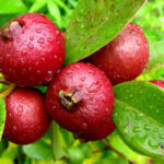 Essa fruta costuma ter 2cm de diâmetro. Como já sabemos, a vitamina C ajuda a prevenir doenças relacionadas ao coração, pele, olhos, ossos, ulceras e gastrites, e assim, a acerola é uma fruta que auxilia o combate a esses problemas. A vitamina C contida em 100 gramas de acerola é de 1678mg (2796% VD).