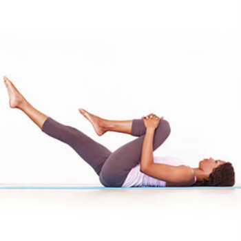 Como fazer: deitar-se de costas em cima de uma esteira ou colchonete com os braços retos no chão e paralelos ao tronco. Levantar as pernas no ar e levar o pé direito sobre o joelho esquerdo (sem encostar, como na foto acima). Então, com a ajuda das mãos, empurrar o joelho direito e direção ao peito.