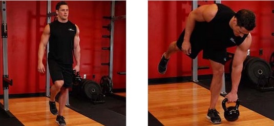 2. Levantamento terra com kettlebell de uma perna