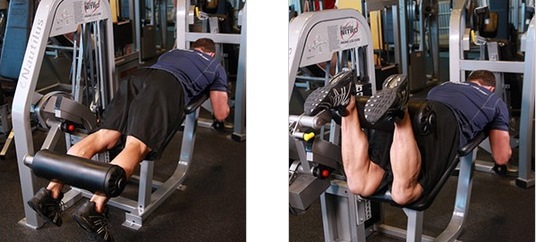Como fazer: antes de tudo, recomenda-se escolher uma máquina inclinada (angular) em detrimento de uma reta, pois a posição inclinada aciona mais os posteriores das coxas do que a reta. Ajustar a alavanca do equipamento conforme a sua altura e deitar-se de bruços com o acolchoado da alavanca na parte de trás das pernas, alguns centímetros abaixo das panturrilhas.
