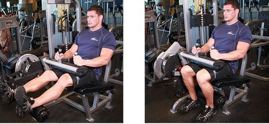 Como fazer: ajustar a alavanca do equipamento de acordo com a sua altura e sentar-se na máquina com as costas contra o acolchoado de suporte. Colocar a parte de trás da parte inferior das pernas na alavanca (alguns centímetros abaixo das panturrilhas) e segurar o acolchoado que vai no colo contra as coxas, logo acima dos joelhos.