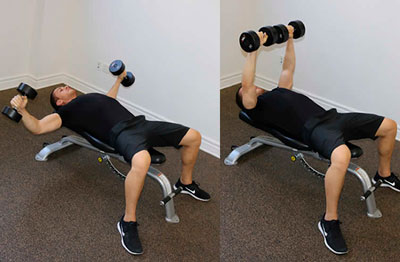 - Crucifixo inclinado com halteres – 3 séries de 6 repetições.