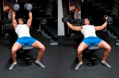 - Supino inclinado com halteres – 4 séries de 6 a 8 repetições;