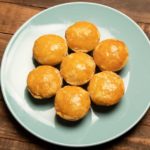 No processador, coloque o grão de bico cozido, ghee, sal e cúrcuma e processe bem. Adicione a água e a farinha aos poucos e processe até obter uma massa mais consistente.