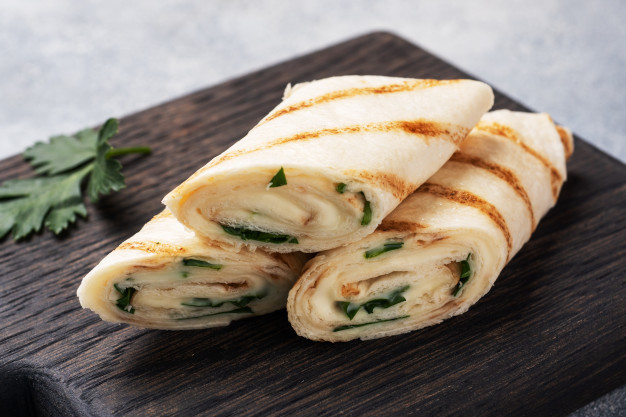 A massa tradicional de panqueca pode ser calórica, assim como alguns recheios que levam queijos gordurosos, carnes etc.