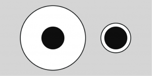 Se você está pensando “Eu só vou colocar menos alimentos no meu prato”… não é tão simples. A figura abaixo explica por quê. Quando você come uma pequena porção em um prato grande, sua mente fica insatisfeita. Enquanto isso, a mesma porção parecerá mais saciante quando comida em um prato pequeno. Os círculos na imagem abaixo são do mesmo tamanho, mas seu cérebro (e estômago) não os enxergam dessa forma.