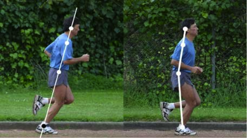 Figura 2: Postura de corrida incorreta, com flexão do quadril e a cabeça em paralelo com os pés.