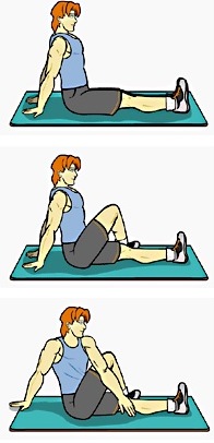Como fazer: sentar-se em uma esteira ou colchonete com as pernas estendidas na sua frente, os braços estendidos para trás e as palmas das mãos apoiados no chão. Dobrar uma das pernas, cruzando-a em cima da outra, como na segunda imagem.