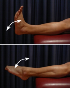 Como fazer: esticar a perna em cima de um banco acolchoado ou da cama e movimentar o pé e o tornozelo para cima e para baixo como na imagem acima. É necessário ir o mais longe que puder para cima e para baixo que conseguir sem sentir dor. Já o alongamento do exercício deve ser de leve a moderado.