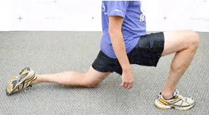 Como fazer: Ajoelhar-se com o joelho direito, curvar a pélvis para dentro e levar a outra perna para trás, com o joelho encostando no chão como na imagem. Nivelar a região lombar, manter peito e os ombros eretos e dobrar-se para frente dos quadril ao joelho para alongar o quadril e o quadríceps direito.
