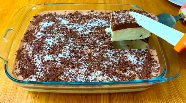 - Depois, cubra com papel alumínio e leve para gelar por pelo menos duas horas. Na hora de servir corte em pedaços e sirva.