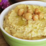 Bata as sementes de gergelim tostadas no processador com ½ xícara de azeite até virar o tahine. Adicione o grão de bico e a água de seu cozimento reservada, o suco de limão, os dentes de alho descascados, o restante do azeite e sal a gosto. Bata mais uma vez, até obter um creme liso.