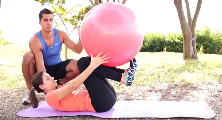 O primeiro item da nossa lista de exercícios de pilates com bola serve para dar uma forcinha para quem deseja tornear os músculos da barriga.
