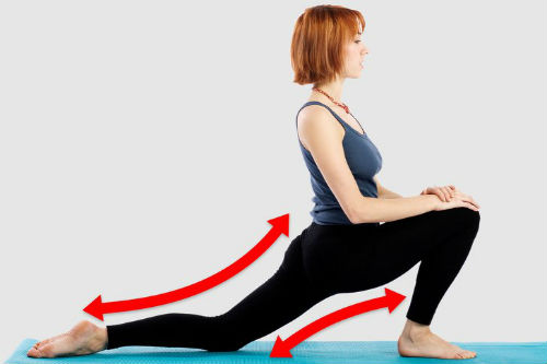 Como fazer: ajoelhe-se com um dos joelhos no chão, na esteira ou colchonete de exercícios, enquanto o pé oposto é colocado plano (na horizontal) no chão em frente ao corpo, com a coxa paralela ao chão. Incline-se para a frente, alongando o quadril em direção ao solo.
