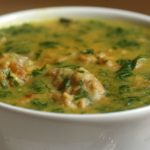 Para a massa misture os ovos com a água morna e aos poucos adicione a farinha até adquirir uma consistência de massa de bolo. Tempere com sal. Modele bolinhos pequenos com essa massa. Aqueça uma panela com água e cozinhe a massa como nhoque. Misture a massa no molho e sirva!