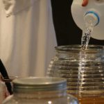 - Transfira o líquido para um recipiente de vidro ou cerâmica, utilizando uma peneira para que não passem folhas de chá;