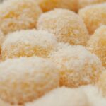Cozinhe o inhame com a água até ficar macio por cerca de 20 minutos. Escorra, passe pelo espremedor até ficar bem amassado como um purê. Em uma tigela adicione todos os ingredientes até obter uma mistura homogênea. Leve para gelar por 4 horas ou até firmar bem. Unte as mãos com um pouco de óleo de coco e modele bolinhas, passe no coco fresco ralado e sirva.