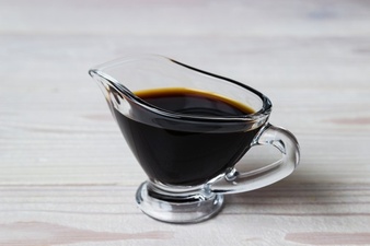 - Primeiro, coloque o molho de soja em uma panela no fogo baixo;