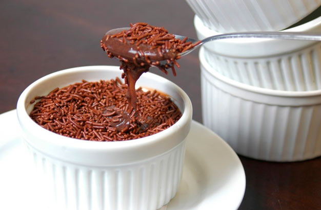 - Em seguida, sirva como preferir. Se for enrolar, deixe um ponto mais consistente. Mas se for servir no pote, o brigadeiro pode ficar mais cremoso.