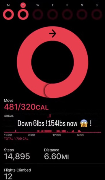 No print postado por Bynes, nota-se que a celebridade completou 10 kg de caminhada, além de dar mais de 15 passos e subir 12 andares de escadas.