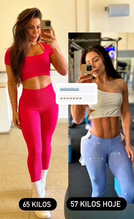 “Dá para notar que eu emagreci?”, questionou ela na imagem, perguntando quantos quilos os seguidores achavam que ela tinha emagrecido. Posteriormente, ela contou que perdeu 8 kg.