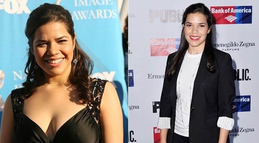Mais conhecida pelo papel da protagonista Betty no seriado americano Ugly Betty, que lhe rendeu até um Globo de Ouro, America Ferrera surgiu visivelmente mais magra, apesar de não te revelado a quantidade de peso que perdeu.