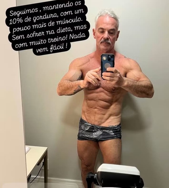 Em outra ocasião, o artista mostrou o físico musculoso. “Seguimos, mantendo os 10% de gordura, com um pouco mais de músculo. Sem sofrer na dieta, mas com muito treino. Nada vem fácil”, reconheceu.