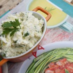 - Bata juntos a maionese, o relish de pepino, e 1/4 de colher de chá dos temperos secos misturados em uma tigela pequena. Reserve.