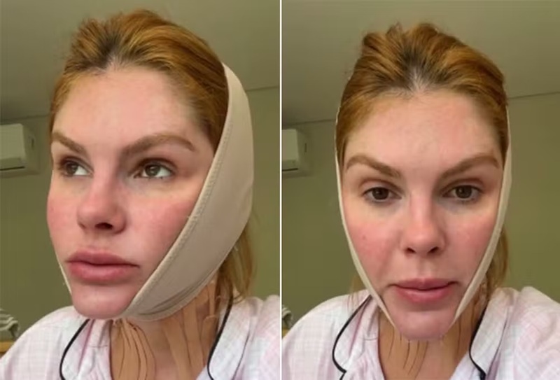 A modelo desabafou sobre os perrengues da técnica estética. Ela colocou um tecido envolvendo a cabeça para segurar as tiras autoadesivas. “Eu sou um meme para você? Porque, para mim, eu sou um meme. Resolvi botar uns troços aqui para melhorar minha papada, menina, e eu tenho que ficar com esse negócio. Por isso que eu coloquei esse outro troço aqui também, entendeu? Só que tá descolando aqui, eu vou lá recolocar. Eu sei que eu sou um meme. Mas olha essa faixa aqui”, disse ela aos seguidores do Instagram.