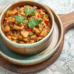 Se você está procurando um alimento que te dê saciedade por um tempo para que você possa emagrecer, uma berinjela com muitos carboidratos e poucas calorias vale a pena. Uma xícara de berinjela cozida tem 35 calorias e 89% delas vêm de carboidratos. Calorias de proteína e gordura são 6% e 5% respectivamente.