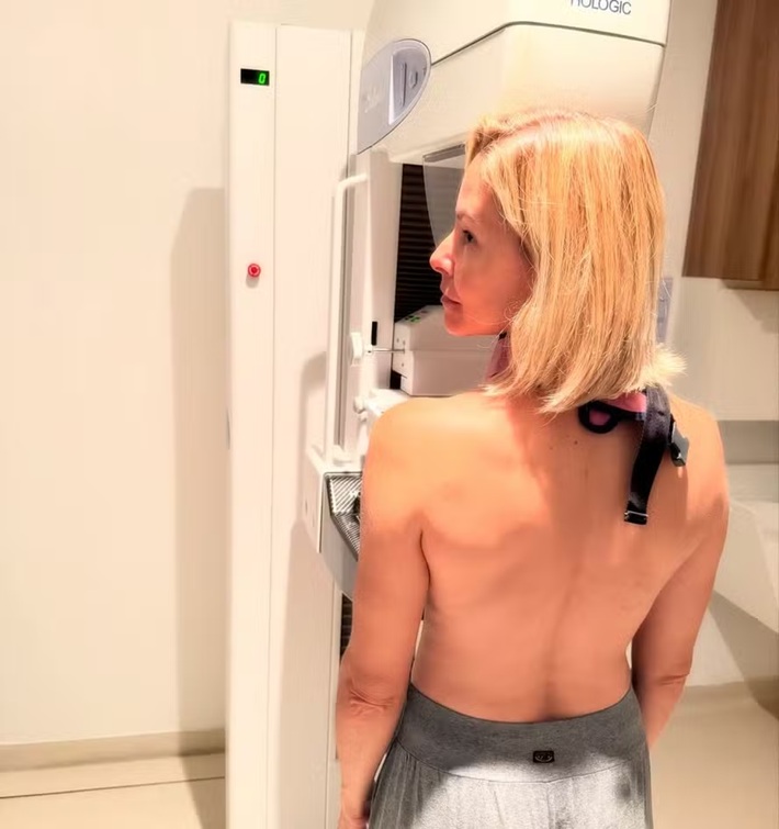 Bianca Rinaldi mostrou também uma imagem durante o exame de mamografia e fez um alerta sobre a importância do exame para prevenir o surgimento da doença: “Mesmo com todos os medos, receios, vulnerabilidade, todo ano eu faço a mamografia. Precisamos nos cuidar, fazer o que tiver que fazer. Prevenir, se descobrir algo que seja no começo para poder curar. Pois a cura existe, quando se descobre no começo é possível. Mulheres se cuidem! O exame é rápido e não dói”.