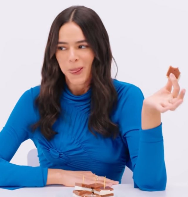 Ela disse que isso trazia memórias da infância, quando costumava comer com frequência, enquanto guardava alguns para sua dupla em Besouro Azul, o ator americano Xolo Maridueña, que, segundo Bruna, é viciado em comida junto com ela, e isso é o que os dois costumam fazer: sair para comer.