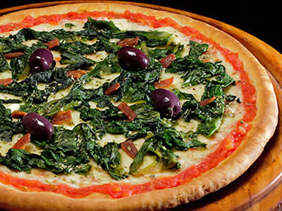 Essa não chega a ser exatamente a pizza mais pedida do cardápio, mas deveria: além de nutritiva, é rica em fibras e traz saciedade com uma quantidade menor de calorias. São apenas 220 por pedaço, ou um pouco mais da metade das calorias da pizza quatro queijos.