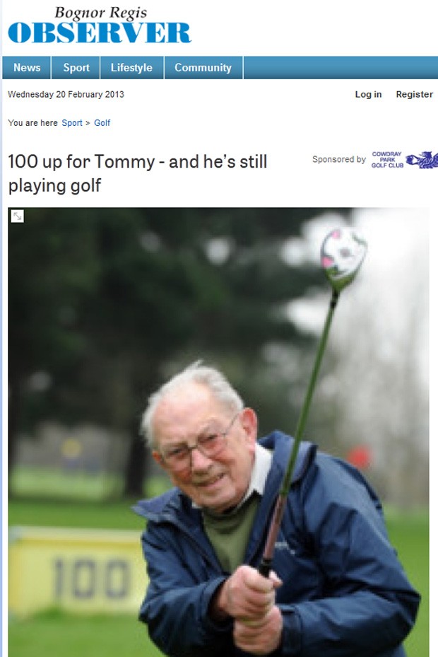 Tommy Thompson (da Inglaterra), um homem com simplesmente 100 anos de idade, ainda mantém a sua boa forma com a prática do golfe. O golfe é sua maior paixão e ele tem orgulho em dizer que, mesmo após ter passado dos 100, ele consegue completar todo o percurso do campo, apesar das tacadas já não serem mais tão longas.