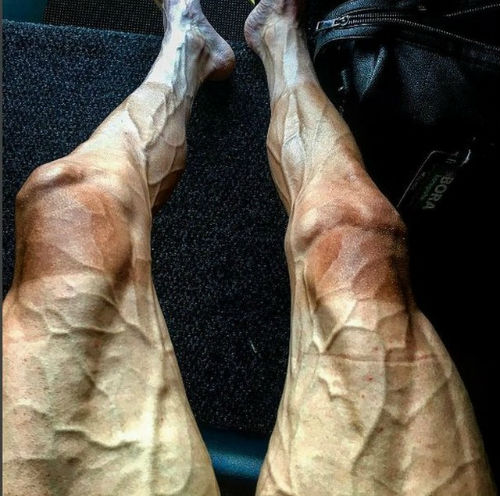A gordura corporal baixa é certamente um fator chave, mas de acordo com especialistas, essas veias saltantes das pernas de Pawel também são o resultado da enorme quantidade de sangue que flui através das pernas dos ciclistas de alta performance.
