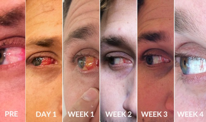 Nas imagens a seguir, é possível observar que os resultados são satisfatórios e que o pterígio normalmente é removido com grande sucesso e sem efeitos colaterais nos olhos.