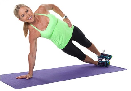 Segurar a posição por alguns segundos, retornar ao posicionamento original e fazer a prancha lateral no outro lado do corpo.