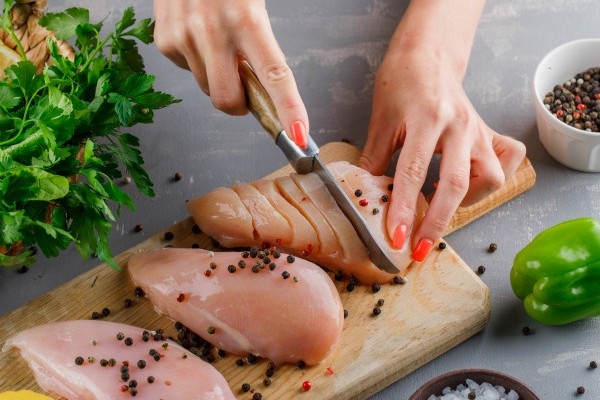 Além disso, imediatamente após a compra, corte o frango em pedaços do tamanho das porções que você vai usar.