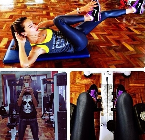 A modelo internacional Alessandra Ambrósio, que é natural do município de Erechim, no Rio Grande do Sul, faz o abdominal bicicleta para deixar a barriga definida e se exercita na cadeira abdutora para trabalhar a região dos glúteos. No dia em que publicou essa foto em sua rede social, a top comentou: “Começando o dia com muita energia!!”.