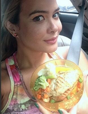 - Quando não está com muita fome, a paulista se alimenta somente com três torradas integrais na hora do jantar. Já se ela estiver com apetite, come exclusivamente alguma fonte de proteínas como frango, carne ou peixe.
