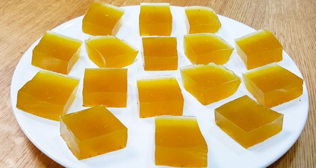 - 400 ml de água (Separe 100 ml para fazer o chá, 100 ml para hidratar a gelatina e 200 ml para bater as frutas, depois junte tudo no final, conforme o vídeo abaixo)