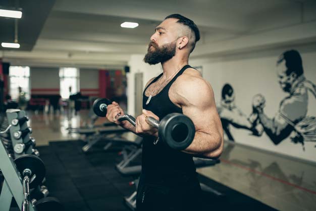 No começo, é melhor usar pesos leves para evitar acidentes. Mantenha os braços esticados para baixo e levante o antebraço até que a mão esteja na altura do peito. Depois, volte à posição inicial de forma controlada.