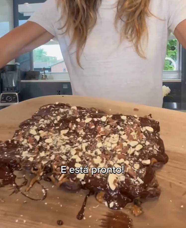 Um dos períodos preferidos de quem gosta de doce, a Páscoa se aproxima! Pensando em quem tem algum tipo de restrição ou nas pessoas que estão de dieta, a top model Gisele Bündchen, 43, ensinou a fazer uma barra de chocolate saudável.