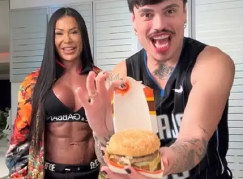 Aprovado? Pela primeira vez, Gracyanne Barbosa, 41 anos, comeu hambúrguer de uma rede de fast food.